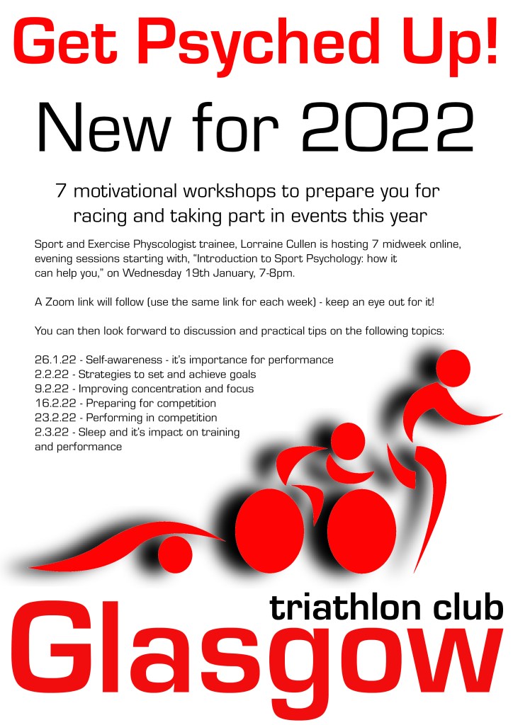 Lorraine Cullen will be delivering a series of 7 psychology of sport sessions to Glasgow Triathlon Club members and those who have access to the club’s Facebook Group. There are some excellent topics to get you prepared for racing in 2022. I’ll post the Zoom link when it is available and remember you can also sign up for the session by emailing me vicky@the-sports-counsel.fitness.