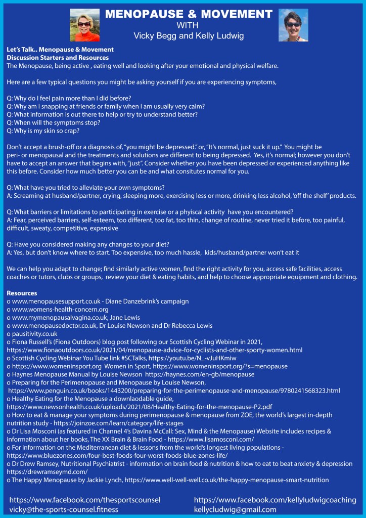 Many thanks to the ladies who attended our ‘Let’s Talk.. Menopause & Movement’ evening at Peckhams of Hyndland on Monday night this week. We had a full house, with 20 tickets booked up within a day of launching. Our small group discussions followed these conversation starter themes; Food and Mood, Sex and Intimacy, Friends and Family, Confidence and Esteem, Opportunities and Change, and Aches and Pains. We certainly didn’t cover all aspects within these broad topics, but we certainly did have plenty to talk about. We could have talked for a lot longer. However, Peckhams staff had to go home as did we. For the most part, we shared experiences and explained individual circumstances. It felt supportive, uplifting and encouraging to know that this conversation has been started.