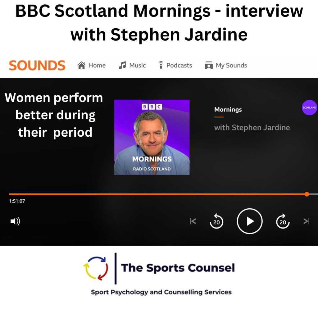 Last week saw me accept an invitation to talk on BBC Scotland Mornings Show with Stephen Jardine. My friend Lesley Kay is the show producer, and on Thursday she’d texted to ask if I’d be the sport psychology voice discussing whether women perform better during their period. Also joining the discussion Hannah Rankin, a professional boxer.